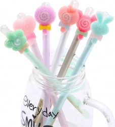 Pióro łączy funkcjonalność i zabawny design, świetne do szkoły i użytku domowego. W opakowaniu znajduje się 48 sztuk, każda sprzedawana pojedynczo, wzory dobierane są losowo.