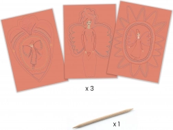 - Tworzenie unikalnych prac: Za pomocą specjalnego narzędzia dzieci łatwo odkrywają wspaniałe, kolorowe motywy podczas wydrapywania.