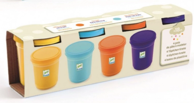 Ciesz się zabawą z plasteliną DJECO, która zawiera 4 naturalne kolory idealne do rozwijania kreatywności i motoryki Twoich dzieci.