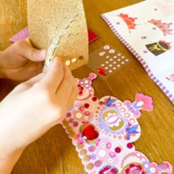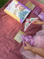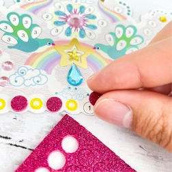Samoprzylepne „kamienie szlachetne” i błyszczące elementy łatwo się aplikują, więc nawet młodsze dzieci poradzą sobie z tworzeniem pięknych, oryginalnych wzorów bez bałaganu.
