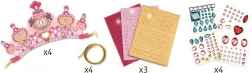Stwórz własne bajkowe koronki z kreatywnym zestawem DJECO. Opakowanie zawiera 4 solidne kartonowe koronki (26 × 12 cm), które dzieci ozdobią błyszczącymi samoprzylepnymi dodatkami oraz złotą wstążką do wygodnego zawiązywania. Świetna kreatywna aktywność na dom, urodzinowe przyjęcie i deszczowe popołudnie – każda mała księżniczka zabierze do domu swoją oryginalną, błyszczącą koronkę.