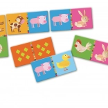Wyjątkowa gra edukacyjna Djeco Domino Granja oferuje dwa różne sposoby gry dzięki dwustronnym kartom. Z jednej strony dzieci znajdą urocze obrazki zwierząt, a z drugiej tradycyjne kropki domina. To połączenie pomaga rozwijać logiczne myślenie, koncentrację i małą motorykę.
