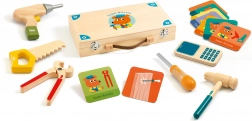 Ten kuferek DJECO z drewnianymi narzędziami oferuje wspaniały świat kreatywnych i odtwórczych zabaw dla Twojego dziecka. Wykonany z wysokiej jakości drewna, zestaw obejmuje: