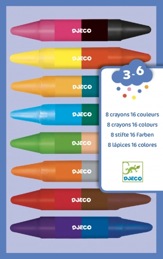 Dwustronne kredki woskowe marki DJECO oferują dzieciom nieograniczone możliwości twórcze. Każda kredka ma dwie różne końcówki, które umożliwiają łączenie kolorów i wypróbowywanie różnych technik rysunku.