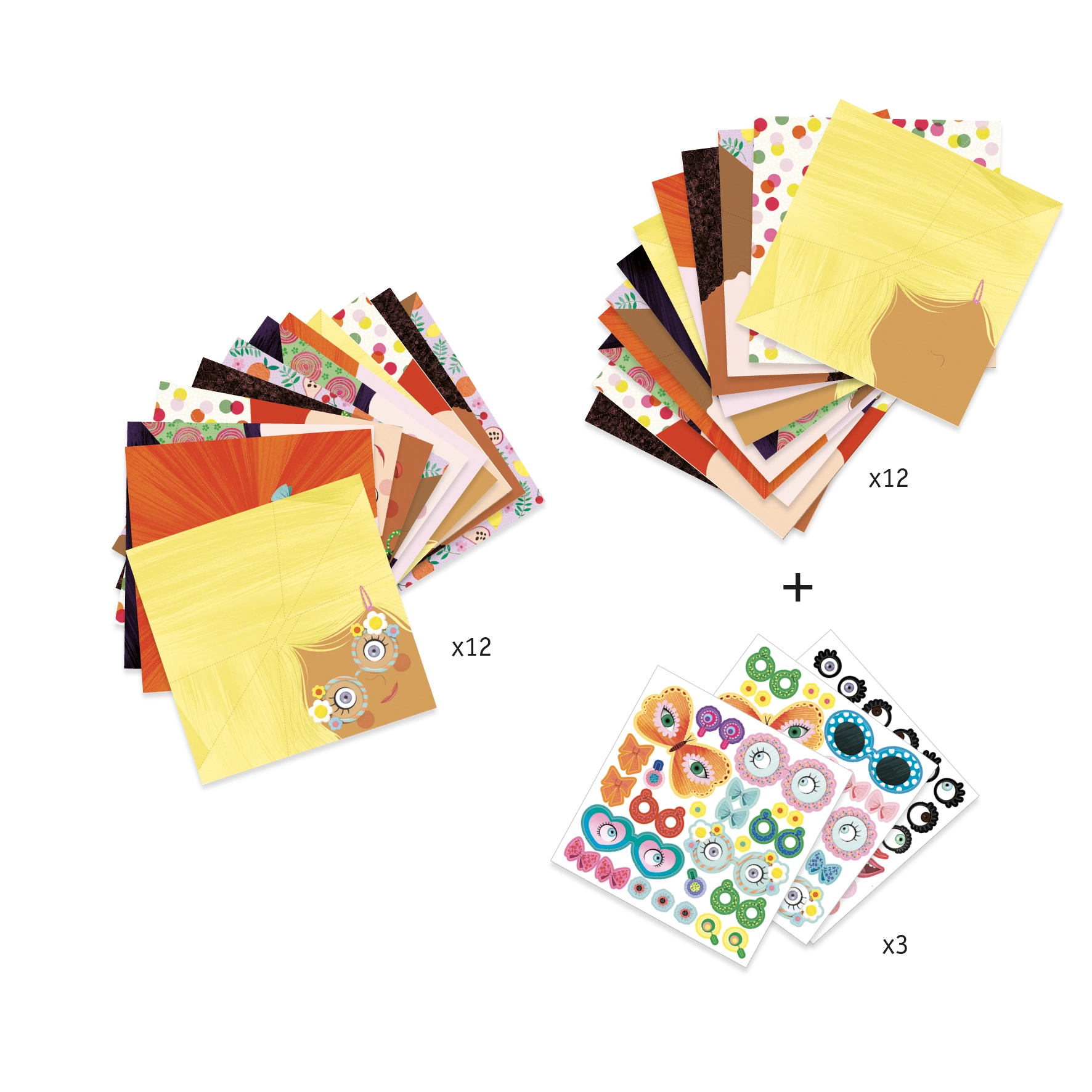 Zabawny i kreatywny zestaw origami marki DJECO, który umożliwia dzieciom tworzenie różnych dziewczęcych twarzy i rozwijanie ich zdolności manualnych.