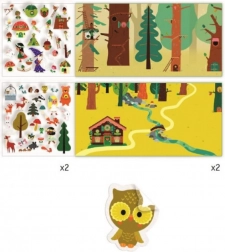 DJECO Opowieść z przestawnymi naklejkami Tajemniczy las to doskonałe narzędzie do rozwijania kreatywności i wyobraźni. Stwórz magiczny las za pomocą różnorodnych naklejek, które można wielokrotnie przestawiać. Ta aktywność wspiera motorykę małą i jest odpowiednia dla dzieci w różnym wieku.