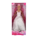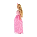 Detalicza balowa/ślubna suknia z delikatnymi wzorami i koroną nadaje lalce baśniowy wygląd.