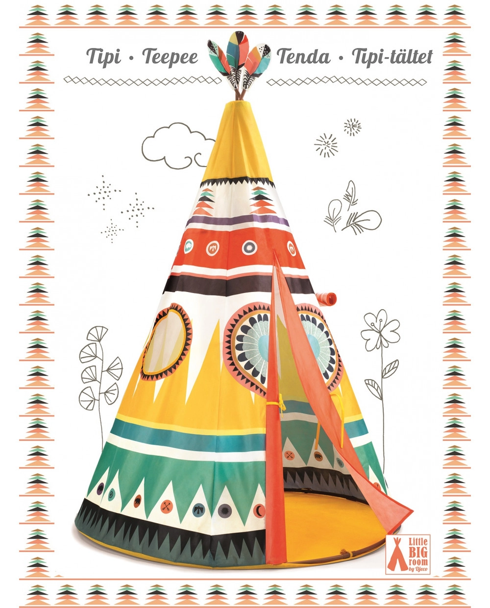Namiot dziecięcy Djeco Teepee został zaprojektowany tak, aby zapewnić idealną kryjówkę dla małych poszukiwaczy przygód. Dzięki oryginalnemu wzornictwu inspirowanemu kulturą rdzennych Amerykanów stanowi estetyczny element dziecięcego pokoju lub ogrodu. Namiot wykonano z wytrzymałej włókniny i wyposażono w plastikowe maszty, co gwarantuje długą żywotność i łatwą pielęgnację.