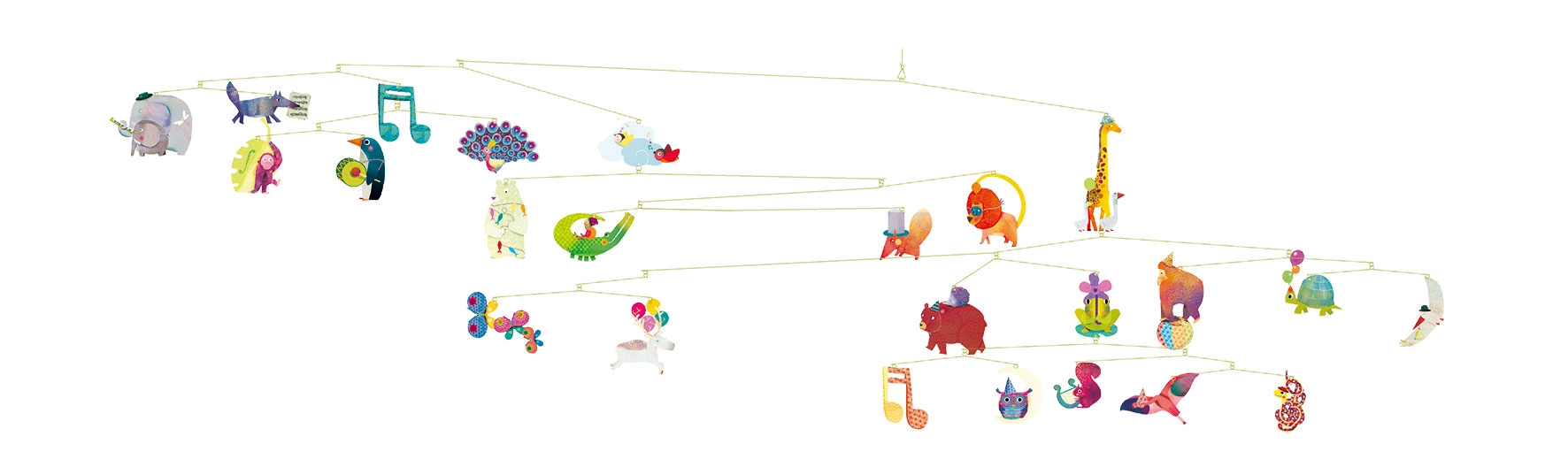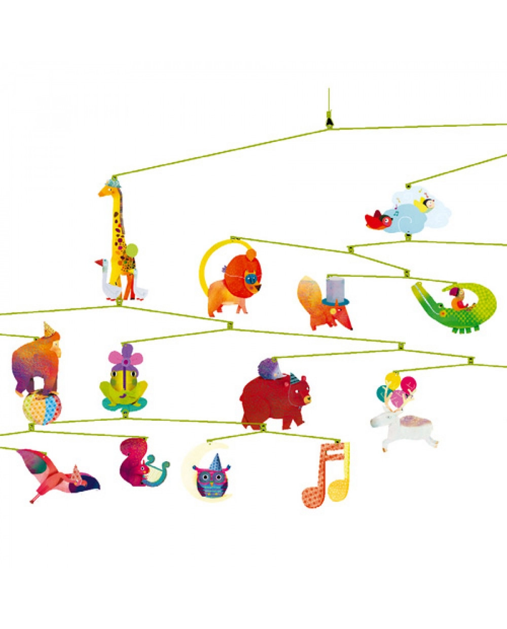 Zawieszana dekoracja Karnawał zwierzątek marki Djeco to pięknie wykonany dodatek, który zamieni każdy pokój dziecięcy w wesoły karnawał. Każde zwierzątko jest barwne i dopracowane w detalach: