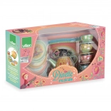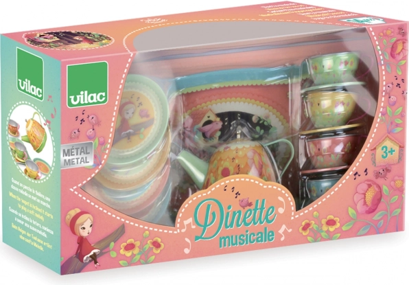 Urządzanie podwieczorku z herbatą jeszcze nigdy nie było tak magiczne jak z zestawem Vilac Musical. Ten metalowy komplet zachwyca baśniowymi ilustracjami z motywem „magicznego lasu” oraz unikalnym elementem muzycznym. Po przechyleniu czajniczka rozbrzmiewa miła melodia, która dodaje całej zabawie uroku.