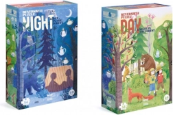 Baw się dwustronnymi puzzlami Dzień i noc w lesie, które oferują dwie różne sceny z pięknymi ilustracjami na jednym zestawie. Idealne do rozwijania dziecięcej wyobraźni i motoryki małej.