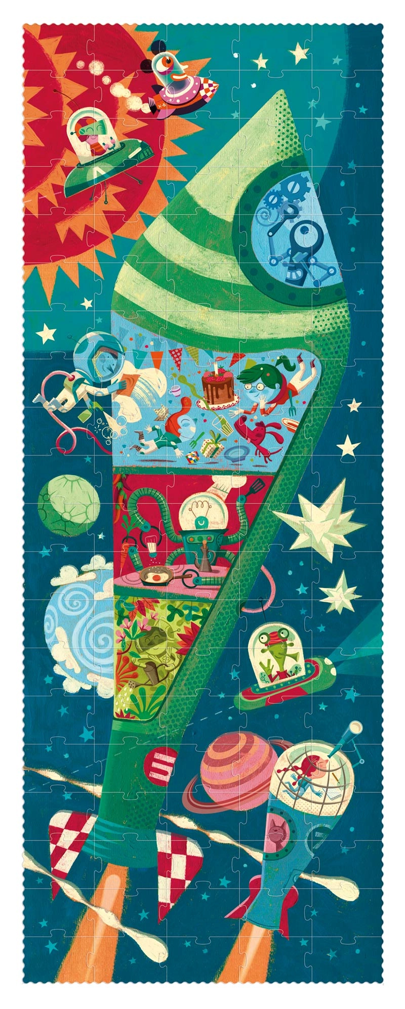 Odkryj zabawę z puzzlami od Londji, które przeniosą Cię w przyszłość. Ta układanka oferuje ekscytujące wyzwanie ze 100 solidnymi i wytrzymałymi elementami, idealna dla małych i dużych miłośników puzzli. Ponadczasowy design i urocze ilustracje wciągną Cię na długie godziny kreatywnego układania.