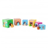 Sześć uroczych drewnianych zwierzątek pasuje do odpowiednich otworów w klockach. Dzieci ćwiczą sortowanie, dopasowywanie oraz zabawę w odgrywanie ról.