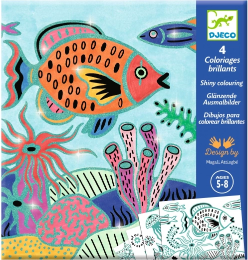 Odkryj świat pod morzem z tymi niesamowitymi brokatowymi kolorowankami od marki Djeco. Każda kartka jest przygotowana do pokrycia lśniącym brokatem, co tworzy zachwycający efekt.