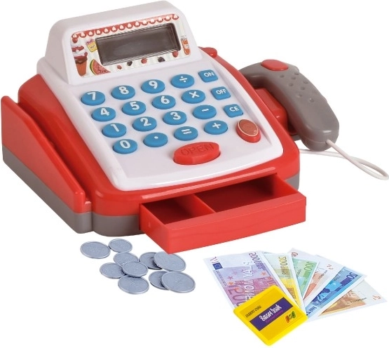 Zabawna i realistyczna kasa dla małych sprzedawców. Oferuje działający kalkulator z wyświetlaczem, otwieraną szufladę na pieniądze oraz czytnik kodów kreskowych ze światłem i dźwiękiem. Idealna zabawka wspierająca rozwój wyobraźni, liczenia i umiejętności społecznych.
