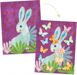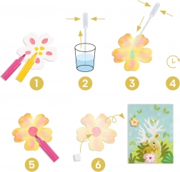 Zestaw Djeco Tworzenie z bibułą z lasu wprowadza wyjątkową technikę malowania na chłonnym papierze. Dziecko odrywa kształt z wstępnie wyciętej bibuły, umieszcza go na tle, wykonuje kilka kropek długopisem, a następnie za pomocą pipety dodaje kroplę wody. Atrament naturalnie się rozpływa, tworząc magiczne, kolorowe efekty. Po wyschnięciu gotowy motyw łatwo przykleić do ilustrowanych teł i ozdobić nim pokój.