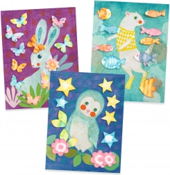 - Wszystko w zestawie: ilustrowane tła, wstępnie wycięte bibuły, pisaki, pipeta i naklejki