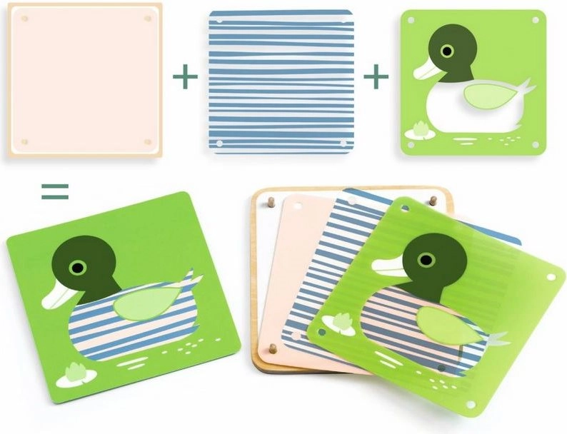 - Magiczny efekt nakładania – przezroczyste karty łączą się w kompletne zwierzęta.