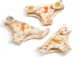 Ten zestaw materiałowych pieluszek DJECO zapewnia dzieciom autentyczne doświadczenie opieki nad lalkami. Pieluszki są wykonane z miękkiego materiału, mają praktyczne boczne zapięcia na rzep, a dzięki uroczym nadrukom staną się ulubionym dodatkiem każdej dziecięcej wyprawki. Zostały zaprojektowane do wielokrotnego zakładania i zdejmowania, co pobudza kreatywną zabawę i rozwój umiejętności społecznych.