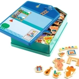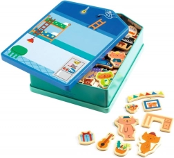 Ten designerski magnetyczny zestaw marki DJECO zamieni każdą chwilę w zabawę. Metalowe pudełko w kształcie domku służy jako przenośna magnetyczna tablica z dwustronnym nadrukiem, dzięki czemu dzieci mogą łatwo tworzyć i zmieniać sceny w różnych pomieszczeniach. Drewniane magnesy są kolorowe, przyjemne w dotyku i trwałe do codziennej zabawy.