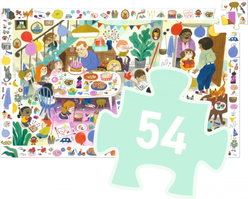 Przeżyj urodzinowe przyjęcie pełne zabawy z wyszukiwanką puzzle od Djeco! Układanie 53 elementów tej kolorowej układanki to radość i jednocześnie wyzwanie dla każdego dziecka.