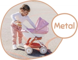 Wózek Baby Nurse wykonany jest z wysokiej jakości metalowej i plastikowej ramy, co zapewnia długą żywotność i stabilność. Dzięki składanym daszkom łatwo można go dostosować do potrzeb małego dziecka. Powierzchnia wózka wykonana jest z tkaniny, która łatwo się czyści - wystarczy gąbka i wilgotna watka.