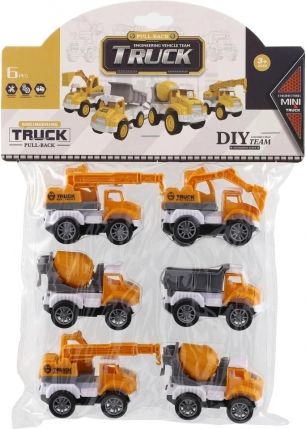 Świetny zestaw 6 mini samochodów budowlanych sprawi radość każdemu małemu budowniczemu. Auta mają napęd na naciąg wsteczny, co zapewnia zabawną i dynamiczną zabawę.