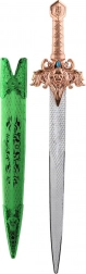 Lekki plastikowy miecz o długości 54 cm w ozdobnej pochwie jest gotowy na każdą wyprawę przeciwko ciemnym siłom. Świetny dodatek do kostiumu elfa lub rycerza.