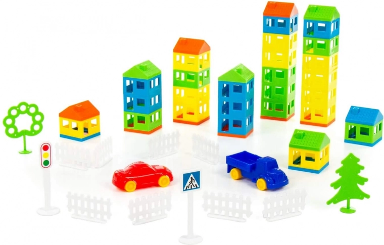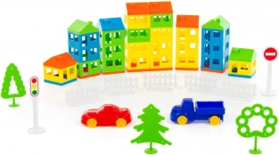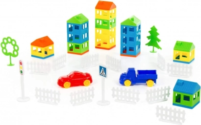 Klocki rozwijają małą motorykę, koordynację ręka-oko, a także pobudzają wyobraźnię dzieci. Dzięki różnym komponentom, takim jak domy, drzewa, pojazdy i oznakowanie drogowe, dzieci mogą zbudować interaktywną scenerię miejską.
