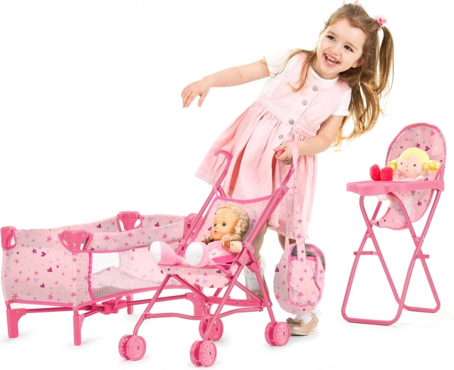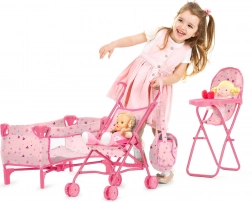 Zestaw dla lalek Trixy 3w1 od Chipolino to kompletne rozwiązanie dla małych opiekunek. W zestawie znajdują się wózek spacerowy, krzesełko do karmienia, łóżeczko, torba na pieluszki oraz torba do przenoszenia. Wszystkie elementy zostały zaprojektowane tak, aby były lekkie i składane dla łatwego przenoszenia i przechowywania: