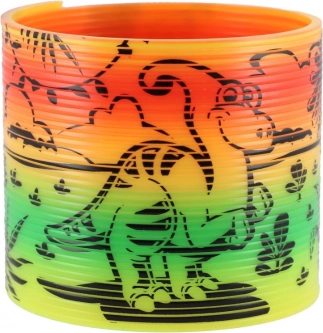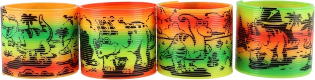 Ciesz się godzinami zabawy z tą popularną plastikową sprężynką z motywem dinozaurów. Dzieci mogą używać jej do: