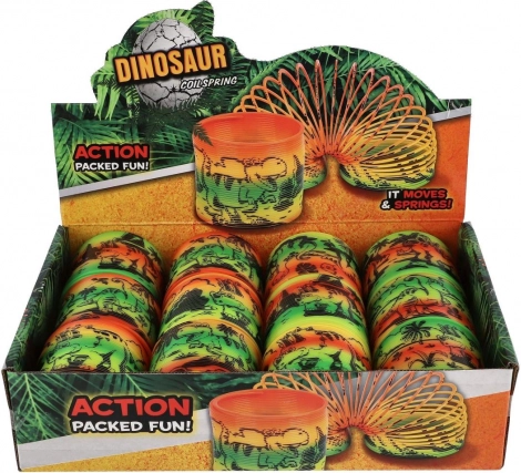 Plastowa sprężynka z motywem dinozaurów. Świetna zabawka dla dzieci od 3 lat, odpowiednia także jako pomoc antystresowa.