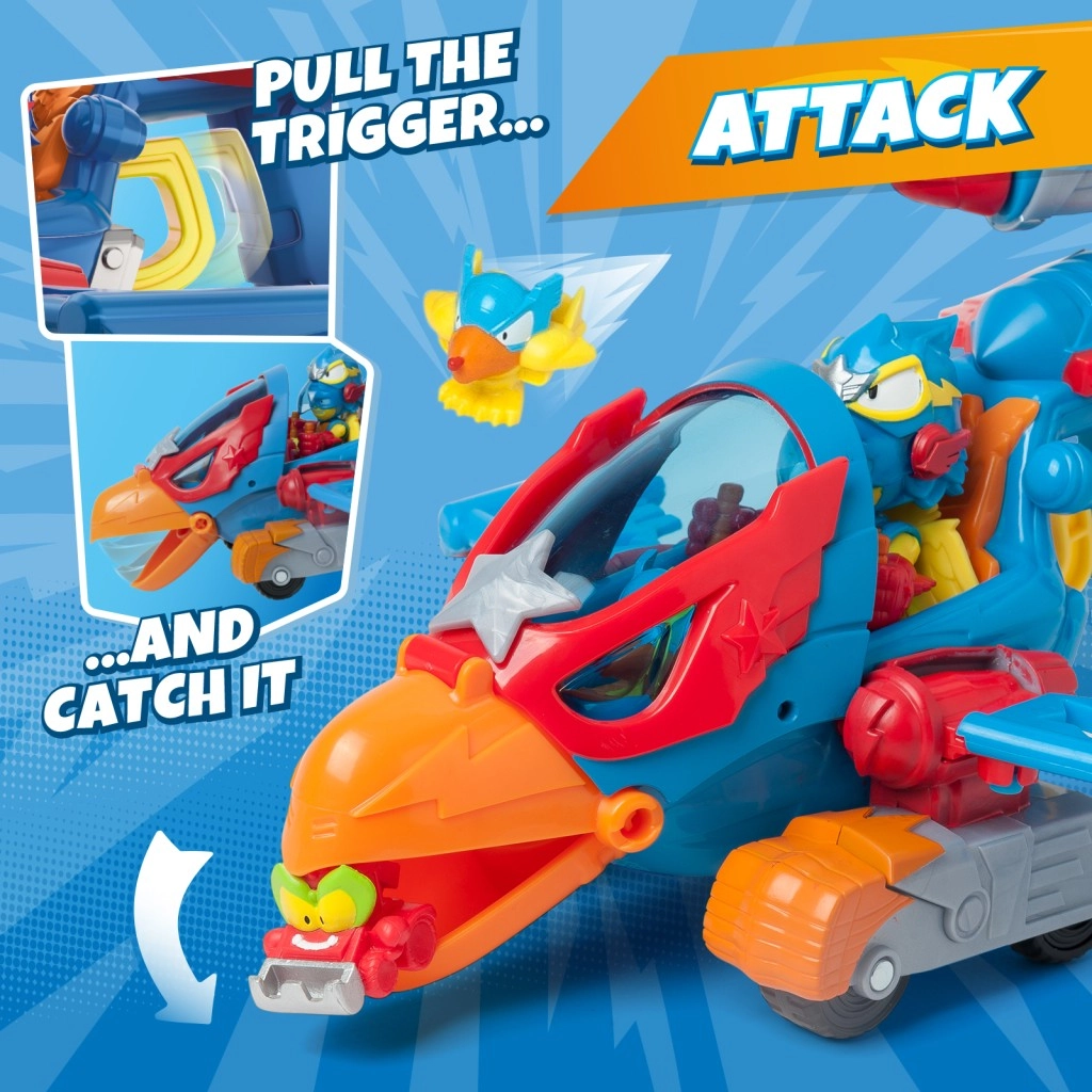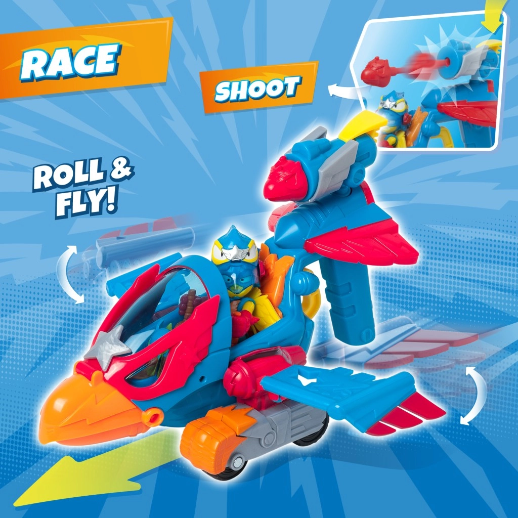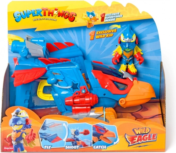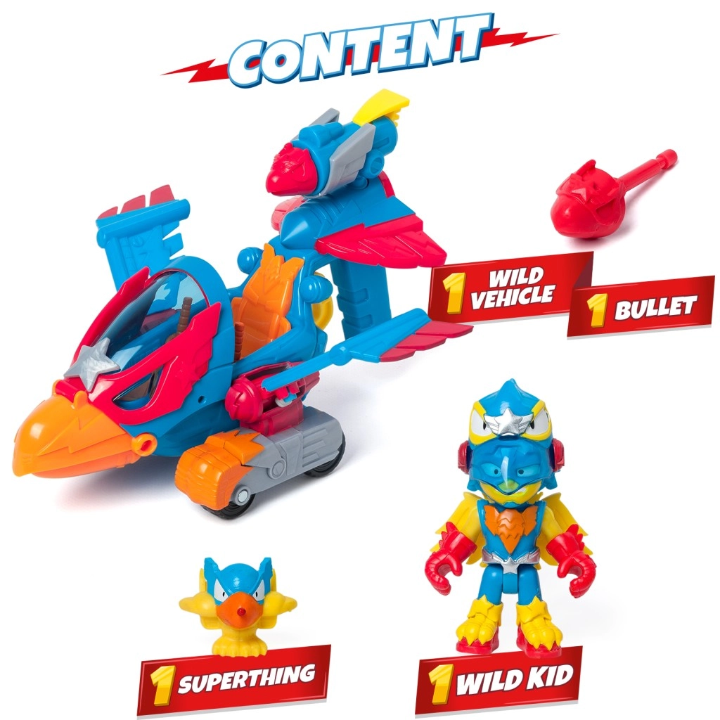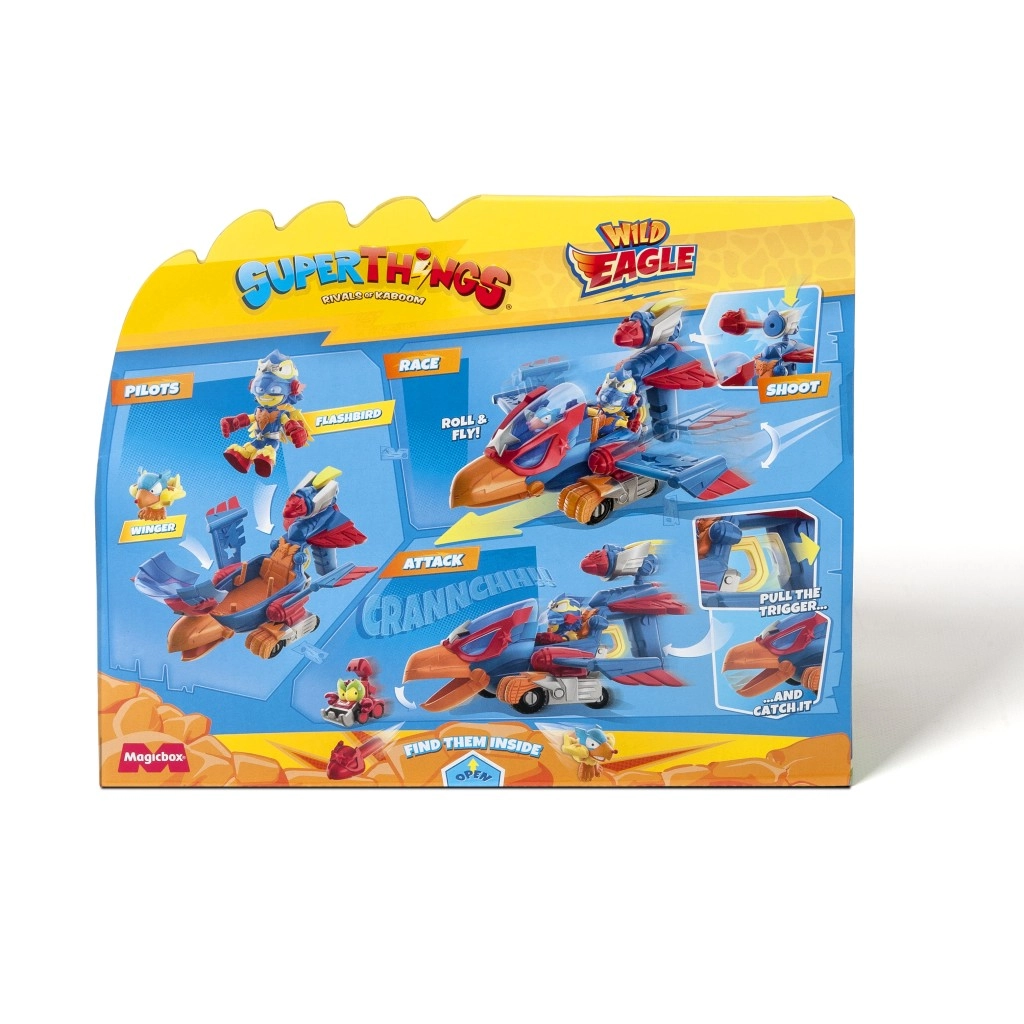 Zanurz się w świecie przygód z ekskluzywnym Kidem i SuperThingiem, którzy mogą latać w kokpicie Wild Eagle Jet. Ruchome skrzydła dodają realizmu, a przekręcenie spustu pozwala strącić złoczyńców lub schwytać ich w dziobie.