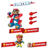 SuperThings Wild Tigerbot przynosi emocje na ulicach Kaboom City! Ten niesamowity transformujący robot oferuje pełną akcji zabawę dla dzieci i fanów SuperThings, którzy chcą doświadczyć siły dzikiego tygrysa w postaci robota.