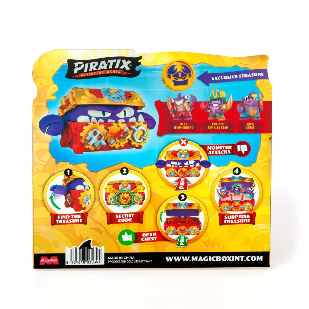 Odkryj tajemnice Skarbu Potwora z tym unikalnym zestawem Piratix. Podejmij wyzwanie i rozwiąż zagadki skrzyni, aby uwolnić przeklętą załogę i zdobyć ich skarb.