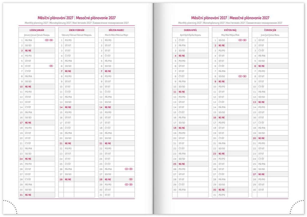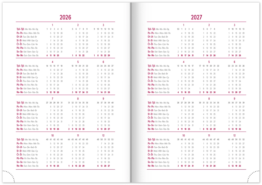 - Miesięczne i roczne kalendarze planowania na lata 2026 i 2027