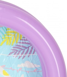 Basen zawiera kolorowy nadruk w postaci liści i kształtów po wewnętrznej stronie, co tworzy zabawną atmosferę dla radości z zabaw w wodzie.