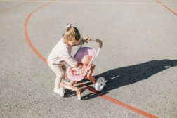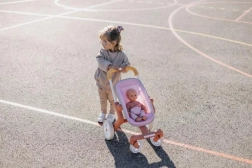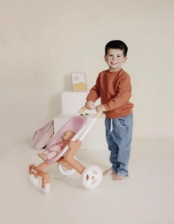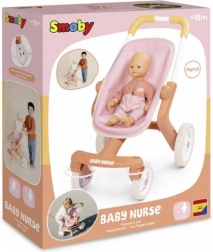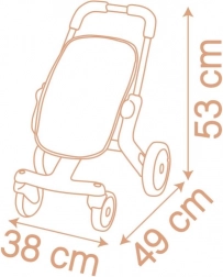 Ten wózek dla lalek oferuje łatwe sterowanie i manewrowanie dzięki przednim kołom obracającym się o 360 stopni. Lekka i wytrzymała plastikowa rama zapewnia długą żywotność i wygodną obsługę. Utrzymanie w czystości jest proste — wystarczy zmoczyć gąbkę wodą i łatwo wyczyścić wózek, co jest idealne, gdy zabrudzi się podczas zabawy. Wózek jest przeznaczony dla lalek do 42 cm, jednak lalka nie jest częścią zestawu.