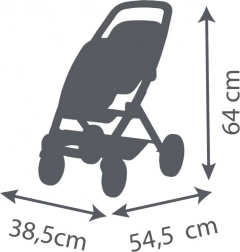 Wymiary wózka to 54,5 x 38,5 x 64 cm, co umożliwia łatwą obsługę i przechowywanie. Lalka nie wchodzi w skład zestawu.