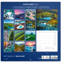Ciesz się dwunastoma przepięknymi fotografiami z różnych zakątków świata z kalendarzem notatkowym Nasza Planeta 2026. Oferuje kalendarium w ośmiu językach, fazy Księżyca, ważne święta oraz miejsce na notatki.