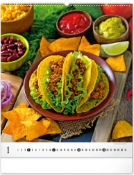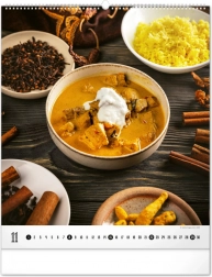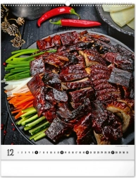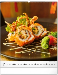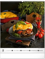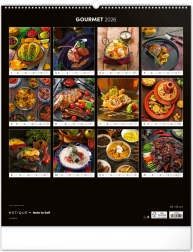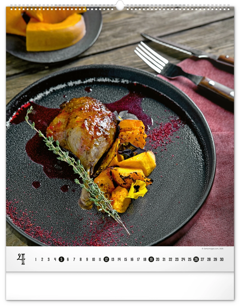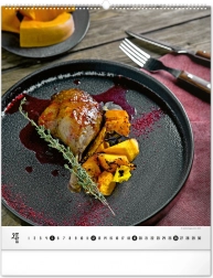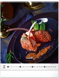 Wielkoformatowy kalendarz ścienny z kolekcji Platinum Collection oferuje inspirujące fotografie luksusowych potraw, które nie tylko pobudzą apetyt, ale również elegancko ozdobią każdą kuchnię lub jadalnię.