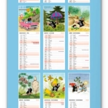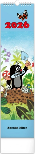 Atrakcyjny kalendarz ścienny z ilustracjami Zdenka Milera i praktycznym, podłużnym formatem. Kalendarz zawiera czeskie i słowackie kalendarium z imieninami, świętami, dniami pamiętnymi oraz fazami księżyca.