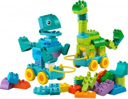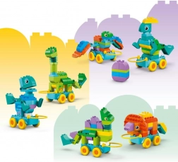 Wzbogacaj kreatywną zabawę swoich dzieci tym wyjątkowym zestawem LEGO DUPLO Dinozaury na kółkach. Zestaw oferuje trzy różne możliwości konstrukcyjne, co oznacza, że dzieci będą się świetnie bawić z różnymi gatunkami dinozaurów: Diplodok i T-rex, triceratops i stegozaur, pteranodon i parazaurolof. Każdy model można urozmaicić dzięki ruchomym częściom, takim jak szyja, ogon czy skrzydła, co zachęca dzieci do rozwijania motoryki małej i wyobraźni.