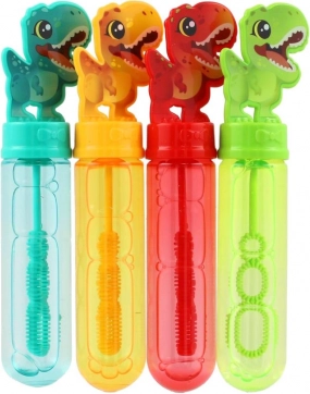 Ten bączek do baniek z motywem dinozaura sprawi radość każdemu małemu miłośnikowi dinozaurów. Wystarczy odkręcić wieczko, zanurzyć w roztworze i dmuchnąć – a świat od razu wypełni się wesołymi bańkami.