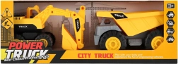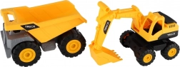 Świetny zestaw dla małych budowniczych! Dwa wytrzymałe plastikowe pojazdy budowlane z wolnym biegiem, które idealnie uzupełnią każdą kolekcję. Łatwo poruszają się po każdej powierzchni – wystarczy delikatnie je popchnąć, a pojadą.