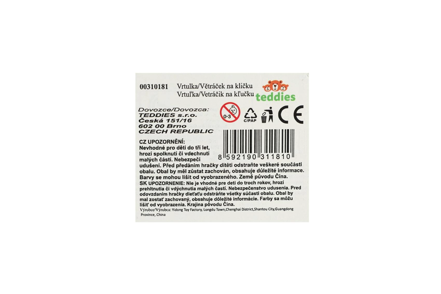 Uroczy wiatraczek z motywem misia ucieszy każde dziecko. Wystarczy zakręcić korbką, a łopatki śmigiełka zaczną szybko się obracać. Idealny jako drobny prezent lub urozmaicenie zabawy na świeżym powietrzu.