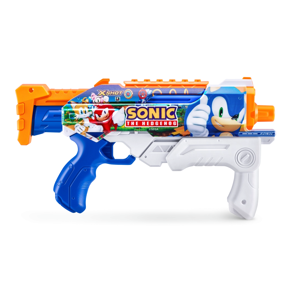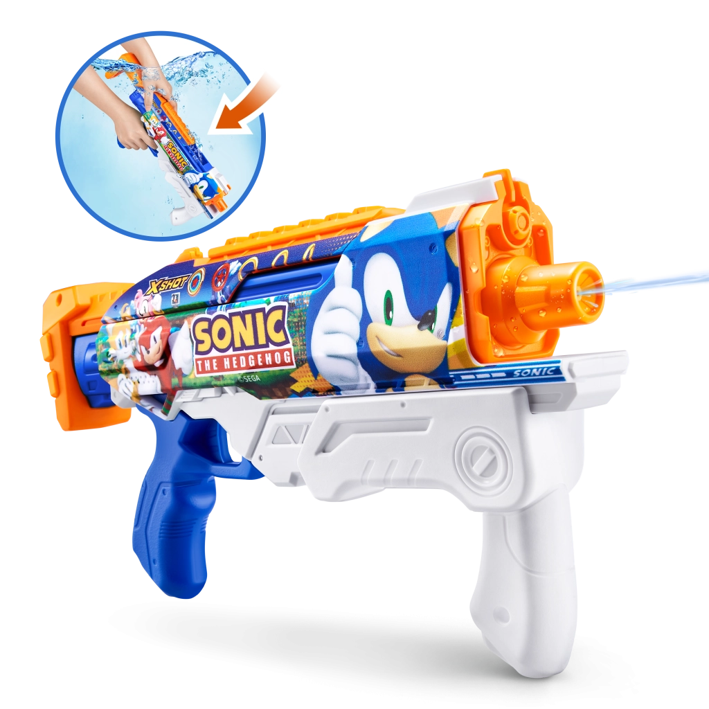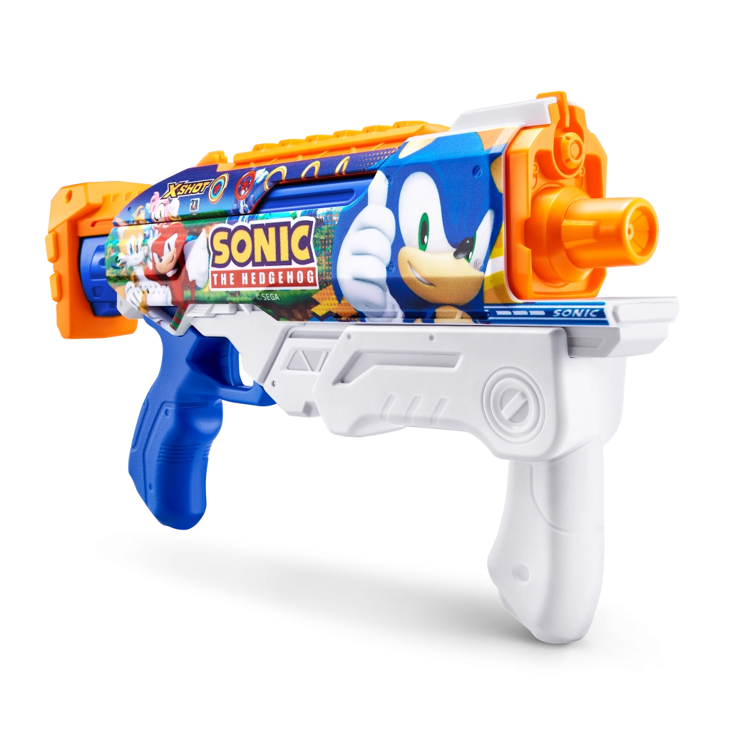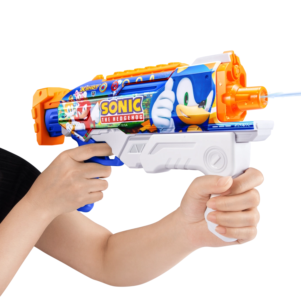 Przedstawiamy pistolet na wodę marki Zuru X-Shot z motywem Sonic the Hedgehog i technologią szybkiego napełniania, która zapewni nieprzerwaną zabawę z zasięgiem do 10 metrów.
