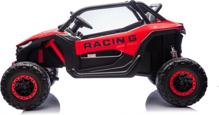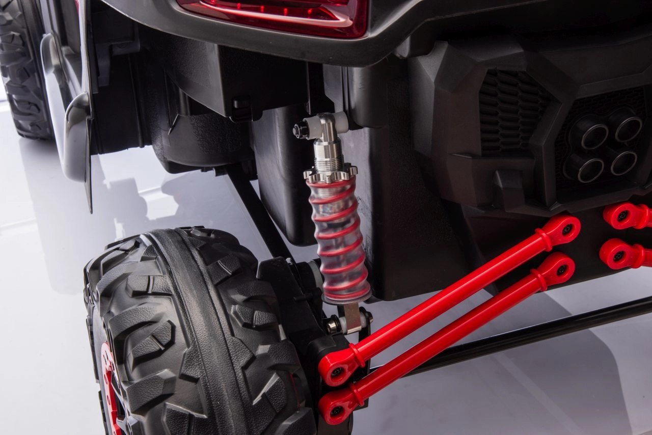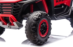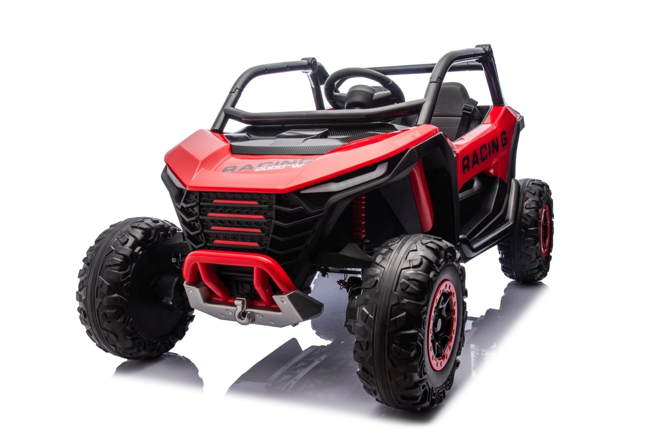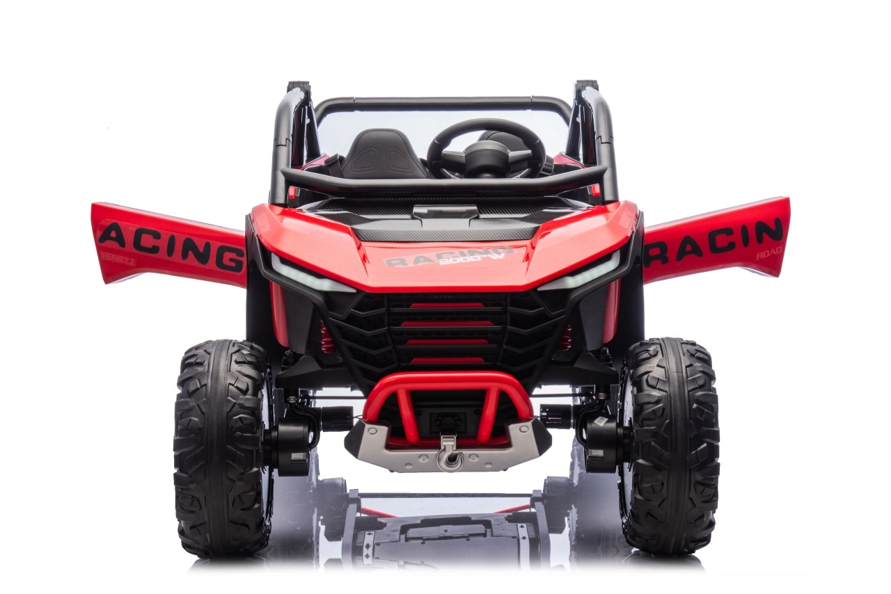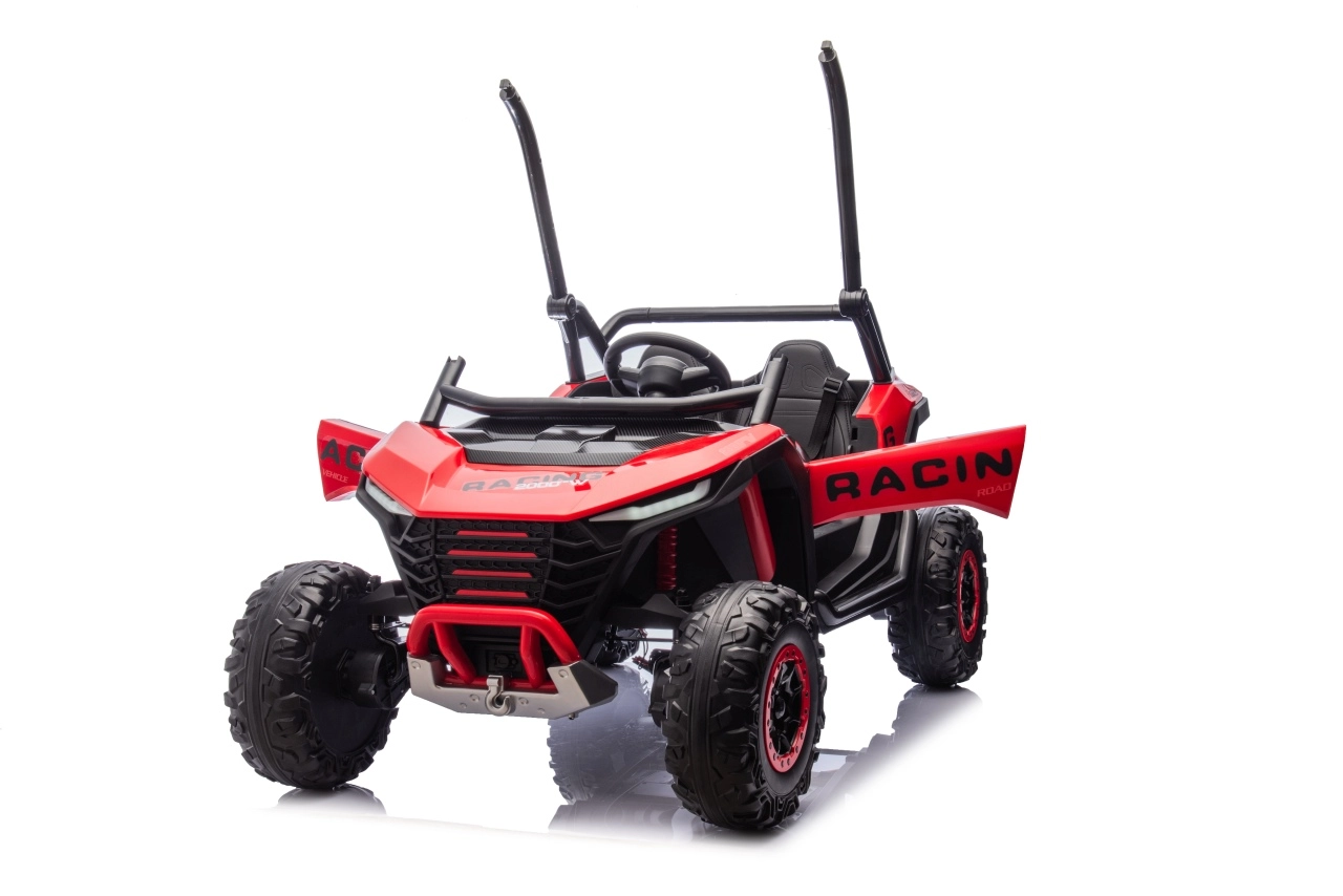 Dziecięcy samochód elektryczny Racing Road to idealny wybór dla małych rajdowców. Ten model w czerwonym kolorze jest wyposażony w mocne silniki i solidną konstrukcję, zapewniającą stabilność i odporność na uderzenia: