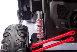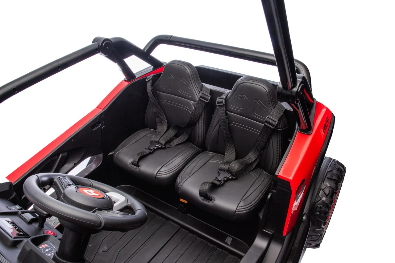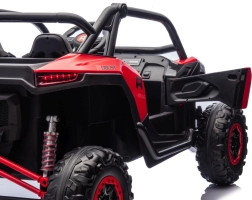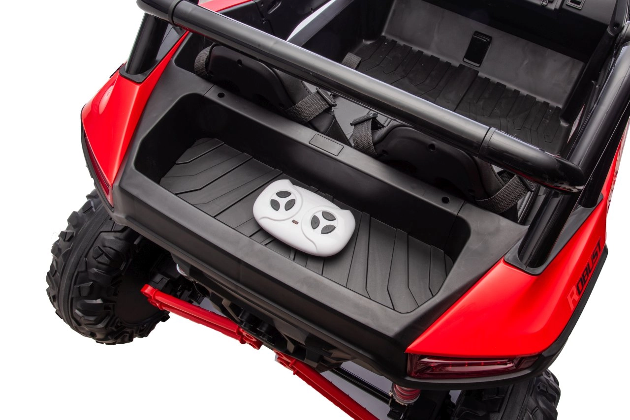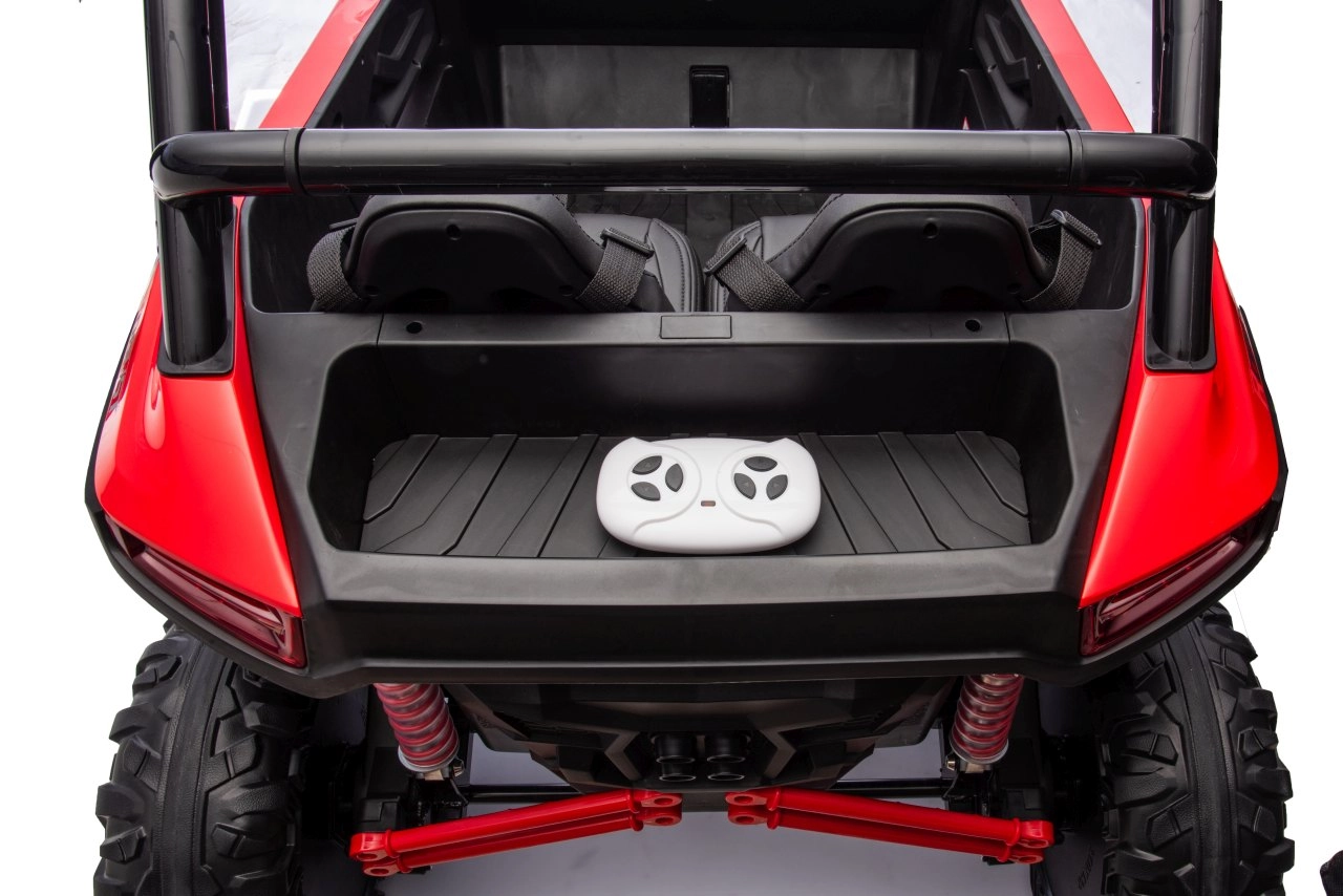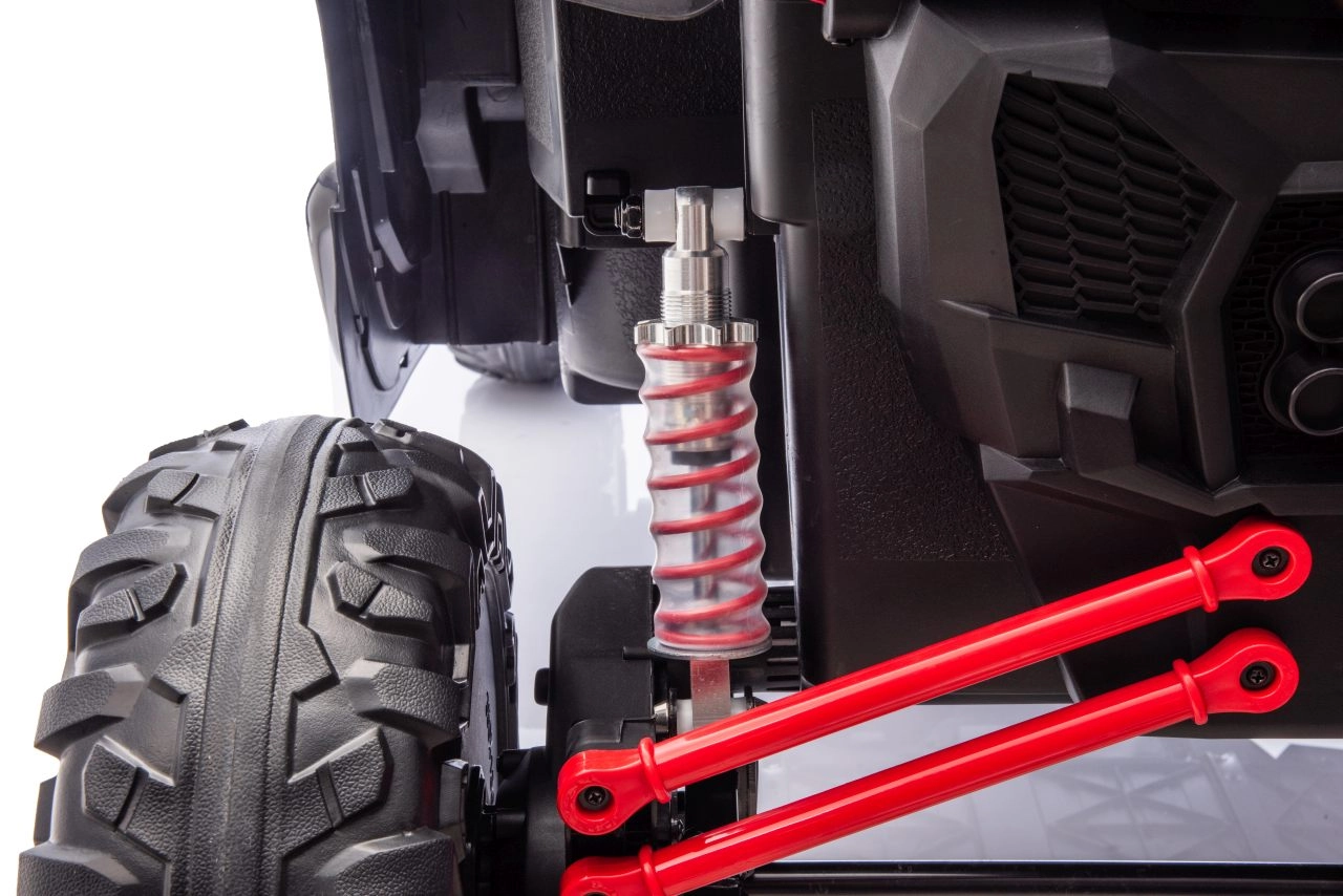 Dziecięcy samochód elektryczny Racing Road to idealny wybór dla małych rajdowców. Ten model w czerwonym kolorze jest wyposażony w mocne silniki i solidną konstrukcję, zapewniającą stabilność i odporność na uderzenia: