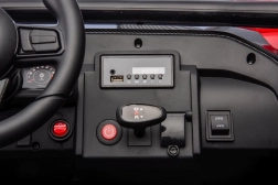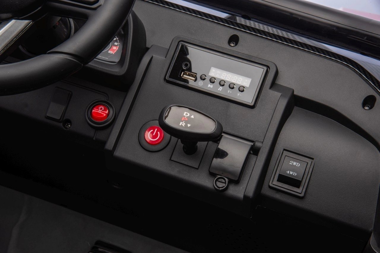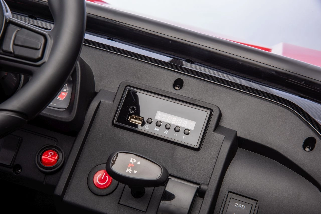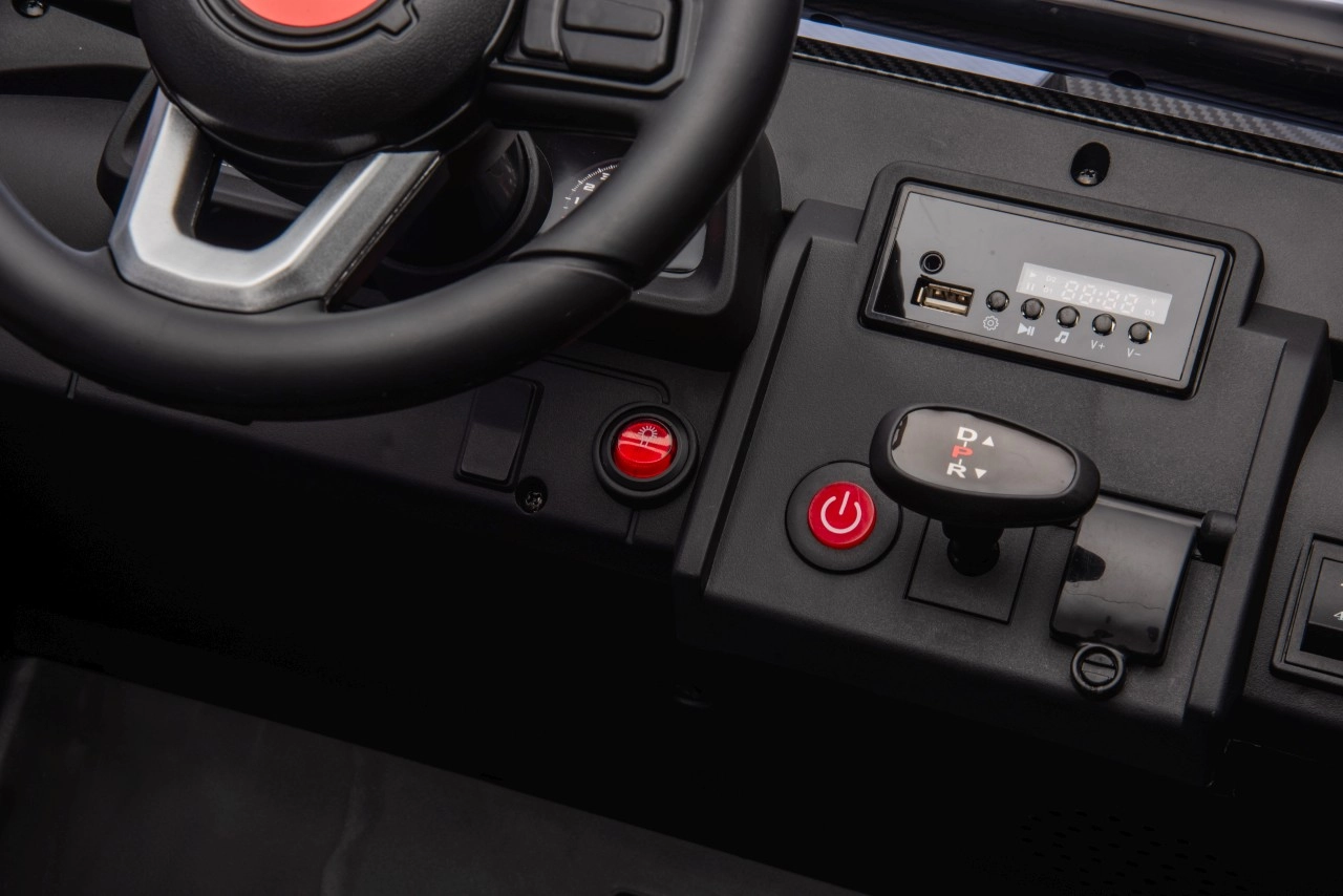 Możliwości zabawy świetnie uzupełnia wbudowany panel audio z USB, MP3, radiem FM i wejściem AUX do odtwarzania ulubionych piosenek. Dodatkowo auto ma efekty dźwiękowe i klakson bezpośrednio na kierownicy, co zwiększa autentyczność jazdy.
